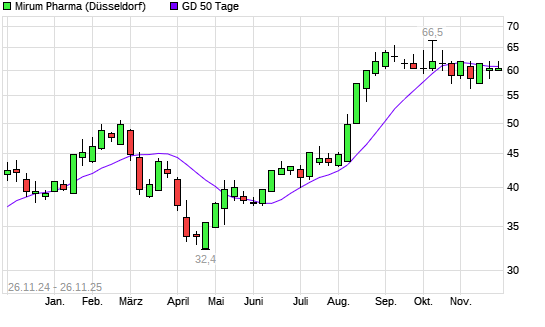 Mit dem Anstieg auf 60,00 EUR hat die Mirum Pharmaceuticals-Aktie am 25.11.2025 die 50-Tage-Linie nach oben gekreuzt.