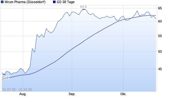 Mit dem Rücksetzer auf 61,00 EUR hat die Mirum Pharmaceuticals-Aktie am 20.10.2025 die 38-Tage-Linie nach unten gekreuzt.