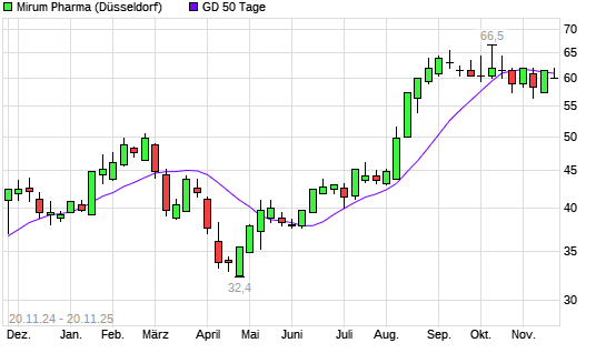 Mit dem Rücksetzer auf 60,00 EUR hat die Mirum Pharmaceuticals-Aktie am 19.11.2025 die 50-Tage-Linie nach unten gekreuzt.