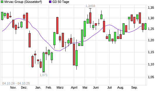 Mit dem Anstieg auf 1,26 EUR hat die Mirvac Group-Aktie am 03.10.2025 die 50-Tage-Linie nach oben gekreuzt.