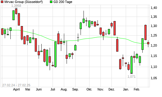Mit dem Rücksetzer auf 1,19 EUR hat die Mirvac Group-Aktie am 26.02.2025 die 200-Tage-Linie nach unten gekreuzt.