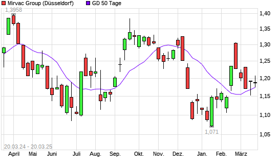 Mit dem Rücksetzer auf 1,16 EUR hat die Mirvac Group-Aktie am 19.03.2025 die 50-Tage-Linie nach unten gekreuzt.