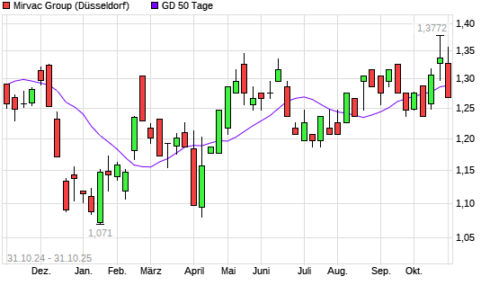 Mit dem Rücksetzer auf 1,26 EUR hat die Mirvac Group-Aktie am 30.10.2025 die 50-Tage-Linie nach unten gekreuzt.