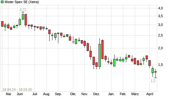 Mit dem Rücksetzer auf 1,20 EUR hat die Mister Spex-Aktie (ISIN DE000A3CSAE2) am 17.04.2025 ein neues All-Time-Low erreicht und damit den Kurs vom 16.04.2025 eingestellt.