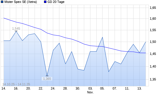 Mit dem Anstieg auf 1,44 EUR hat die Mister Spex-Aktie am 13.11.2025 die 20-Tage-Linie nach oben gekreuzt.