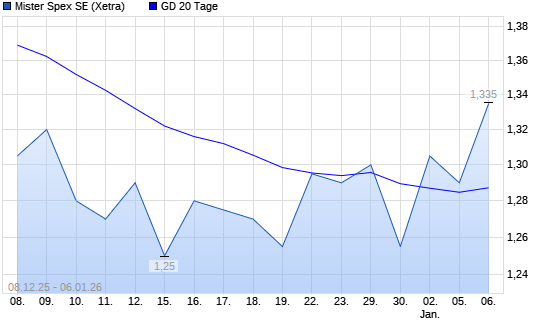 Mit dem Anstieg auf 1,28 EUR hat die Mister Spex-Aktie am 05.01.2026 die 20-Tage-Linie nach oben gekreuzt.