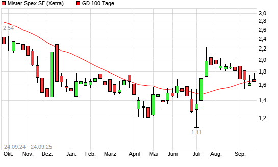 Mit dem Rücksetzer auf 1,58 EUR hat die Mister Spex-Aktie am 23.09.2025 die 100-Tage-Linie nach unten gekreuzt.