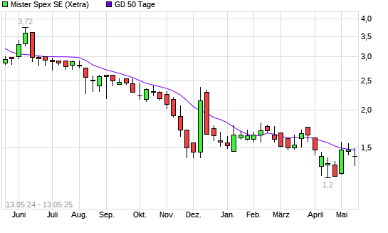 Mit dem Rücksetzer auf 1,32 EUR hat die Mister Spex-Aktie am 12.05.2025 die 50-Tage-Linie nach unten gekreuzt.