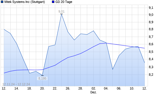 Mit dem Rücksetzer auf 8,60 EUR hat die Mitek Systems-Aktie am 11.12.2024 die 20-Tage-Linie nach unten gekreuzt.