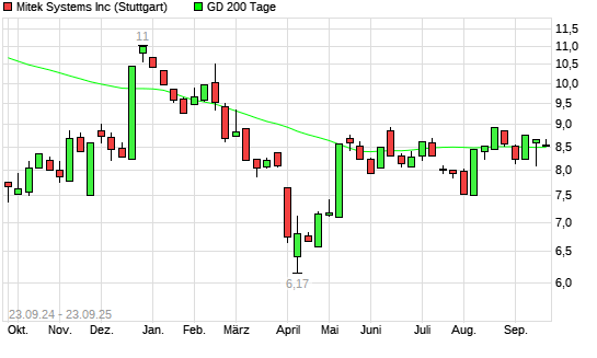Mit dem Rücksetzer auf 8,57 EUR hat die Mitek Systems-Aktie am 22.09.2025 die 200-Tage-Linie nach unten gekreuzt.