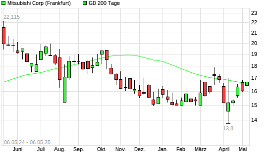 Mit dem Anstieg auf 16,54 EUR hat die Mitsubishi-Aktie am 05.05.2025 die 200-Tage-Linie nach oben gekreuzt.