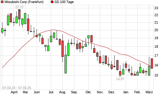 Mit dem Rücksetzer auf 15,72 EUR hat die Mitsubishi-Aktie am 06.03.2025 die 100-Tage-Linie nach unten gekreuzt.