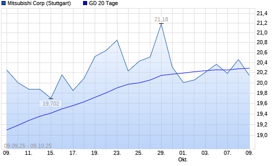 Mit dem Rücksetzer auf 20,16 EUR hat die Mitsubishi-Aktie am 08.10.2025 die 20-Tage-Linie nach unten gekreuzt.