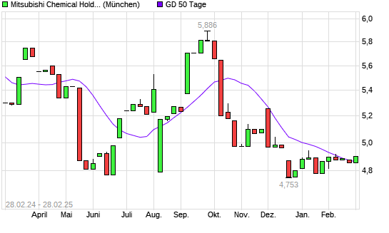 Mit dem Anstieg auf 4,90 EUR hat die Mitsubishi Chemical-Aktie am 27.02.2025 die 50-Tage-Linie nach oben gekreuzt.