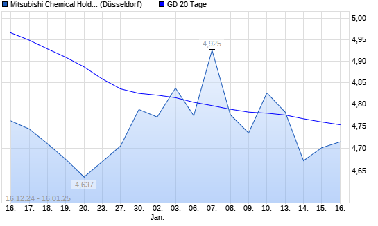 Mit dem Rücksetzer auf 4,78 EUR hat die Mitsubishi Chemical-Aktie am 15.01.2025 die 20-Tage-Linie nach unten gekreuzt.