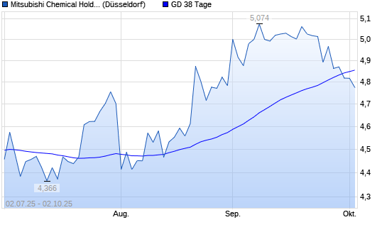 Mit dem Rücksetzer auf 4,90 EUR hat die Mitsubishi Chemical-Aktie am 01.10.2025 die 38-Tage-Linie nach unten gekreuzt.
