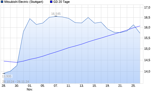 Mit dem Anstieg auf 15,99 EUR hat die Mitsubishi Electric-Aktie am 25.11.2024 die 20-Tage-Linie nach oben gekreuzt.