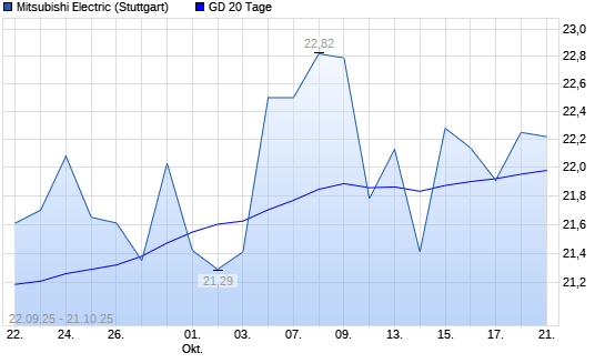 Mit dem Anstieg auf 22,73 EUR hat die Mitsubishi Electric-Aktie am 20.10.2025 die 20-Tage-Linie nach oben gekreuzt.