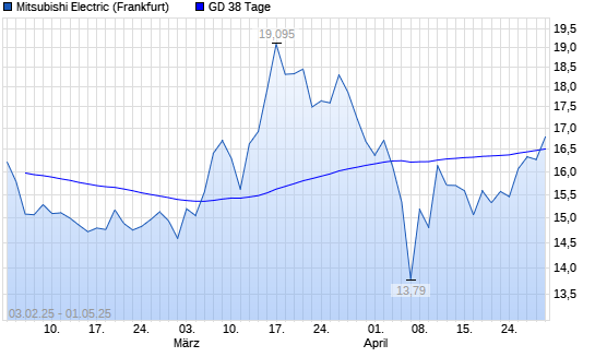 Mit dem Anstieg auf 16,78 EUR hat die Mitsubishi Electric-Aktie am 30.04.2025 die 38-Tage-Linie nach oben gekreuzt.