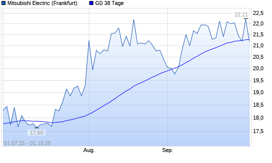 Mit dem Anstieg auf 22,21 EUR hat die Mitsubishi Electric-Aktie am 30.09.2025 die 38-Tage-Linie nach oben gekreuzt.