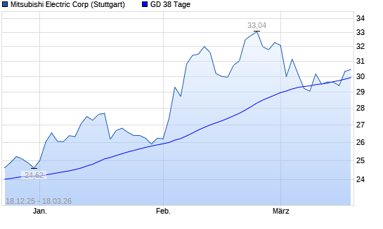 Mit dem Anstieg auf 30,40 EUR hat die Mitsubishi Electric-Aktie am 17.03.2026 die 38-Tage-Linie nach oben gekreuzt.