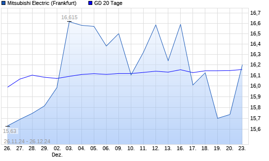 Mit dem Rücksetzer auf 16,20 EUR hat die Mitsubishi Electric-Aktie am 25.12.2024 die 20-Tage-Linie nach unten gekreuzt.
