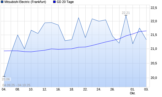 Mit dem Rücksetzer auf 21,33 EUR hat die Mitsubishi Electric-Aktie am 03.10.2025 die 20-Tage-Linie nach unten gekreuzt.