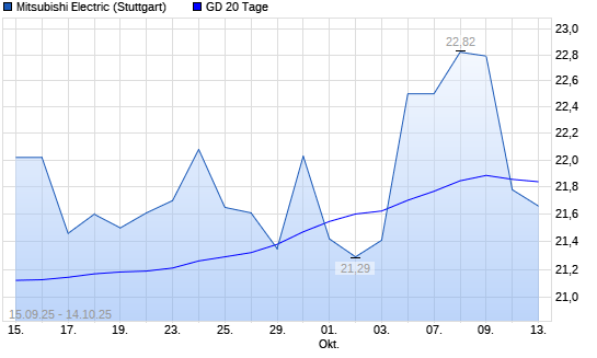 Mit dem Rücksetzer auf 21,60 EUR hat die Mitsubishi Electric-Aktie am 13.10.2025 die 20-Tage-Linie nach unten gekreuzt.