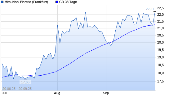 Mit dem Rücksetzer auf 21,20 EUR hat die Mitsubishi Electric-Aktie am 29.09.2025 die 38-Tage-Linie nach unten gekreuzt.