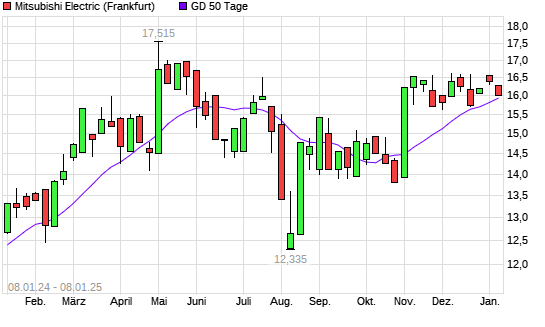 Mit dem Rücksetzer auf 16,07 EUR hat die Mitsubishi Electric-Aktie am 07.01.2025 die 50-Tage-Linie nach unten gekreuzt.