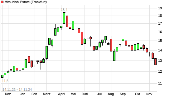 Mit dem Rücksetzer auf 12,90 EUR hat die Mitsubishi Estate-Aktie (ISIN JP3899600005) am 13.11.2024 ein neues 6-Monats-Tief erreicht und damit den Kurs vom 12.11.2024 eingestellt.