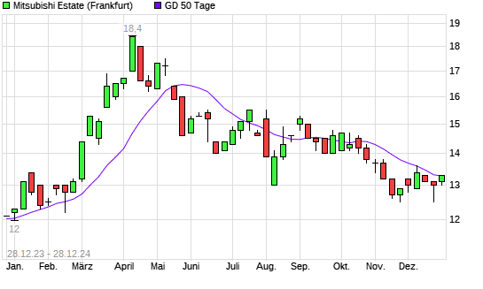 Mit dem Anstieg auf 13,30 EUR hat die Mitsubishi Estate-Aktie am 27.12.2024 die 50-Tage-Linie nach oben gekreuzt.
