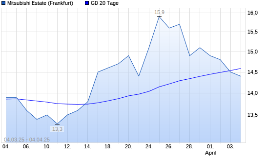 Mit dem Rücksetzer auf 14,50 EUR hat die Mitsubishi Estate-Aktie am 03.04.2025 die 20-Tage-Linie nach unten gekreuzt.