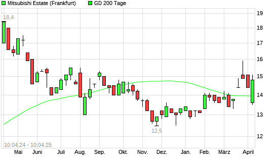 Mit dem Rücksetzer auf 13,80 EUR hat die Mitsubishi Estate-Aktie am 09.04.2025 die 200-Tage-Linie nach unten gekreuzt.