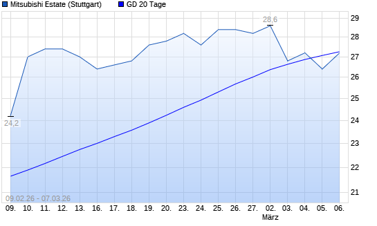 Mit dem Anstieg auf 27,20 EUR hat die Mitsubishi Estate-Aktie am 06.03.2026 die 20-Tage-Linie nach oben gekreuzt.Die Mitsubishi Estate-Aktie befindet sich seit dem 10.04.2025 ...weiterlesen