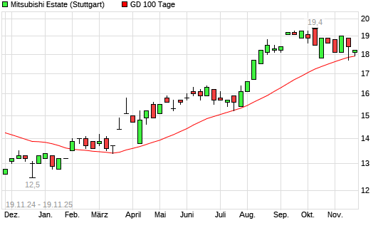 Mit dem Rücksetzer auf 17,80 EUR hat die Mitsubishi Estate-Aktie am 18.11.2025 die 100-Tage-Linie nach unten gekreuzt.Die Mitsubishi Estate-Aktie befindet sich seit dem 10.04.2025 im langfristigen ...weiterlesen