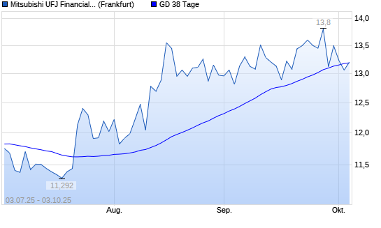 Mit dem Rücksetzer auf 13,06 EUR hat die Mitsubishi Financial-Aktie am 02.10.2025 die 38-Tage-Linie nach unten gekreuzt.
