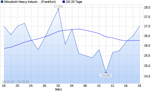 Mit dem Anstieg auf 26,50 EUR hat die Mitsubishi Heavy Industries-Aktie am 17.03.2026 die 20-Tage-Linie nach oben gekreuzt.
