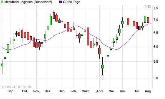 Mit dem Anstieg auf 6,95 EUR hat die Mitsubishi Logistics-Aktie am 06.08.2025 die 50-Tage-Linie nach oben gekreuzt.