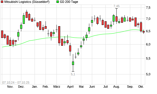 Mit dem Rücksetzer auf 6,50 EUR hat die Mitsubishi Logistics-Aktie am 06.10.2025 die 200-Tage-Linie nach unten gekreuzt.Die Mitsubishi Logistics-Aktie befand sich seit dem 16.05.2025 im ...weiterlesen