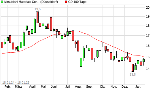 Mit dem Anstieg auf 15,20 EUR hat die Mitsubishi Materials-Aktie am 17.01.2025 die 100-Tage-Linie nach oben gekreuzt.