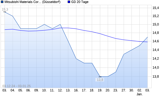 Mit dem Anstieg auf 14,60 EUR hat die Mitsubishi Materials-Aktie am 02.01.2025 die 20-Tage-Linie nach oben gekreuzt.
