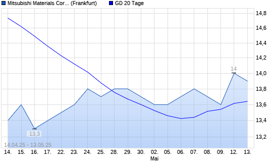 Mit dem Anstieg auf 14,00 EUR hat die Mitsubishi Materials-Aktie am 12.05.2025 die 20-Tage-Linie nach oben gekreuzt.