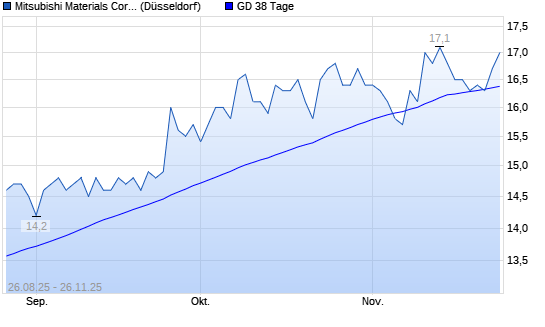 Mit dem Anstieg auf 17,00 EUR hat die Mitsubishi Materials-Aktie am 25.11.2025 die 38-Tage-Linie nach oben gekreuzt.