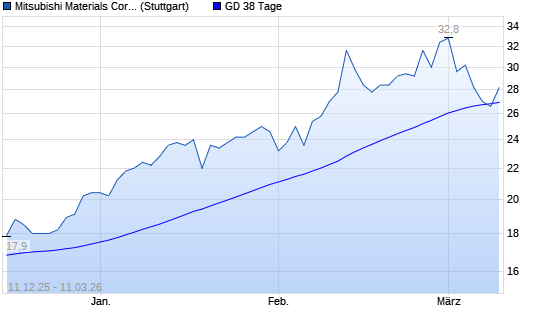 Mit dem Anstieg auf 28,60 EUR hat die Mitsubishi Materials-Aktie am 10.03.2026 die 38-Tage-Linie nach oben gekreuzt.