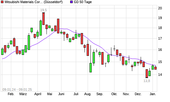 Mit dem Rücksetzer auf 14,70 EUR hat die Mitsubishi Materials-Aktie am 08.01.2025 die 50-Tage-Linie nach unten gekreuzt.