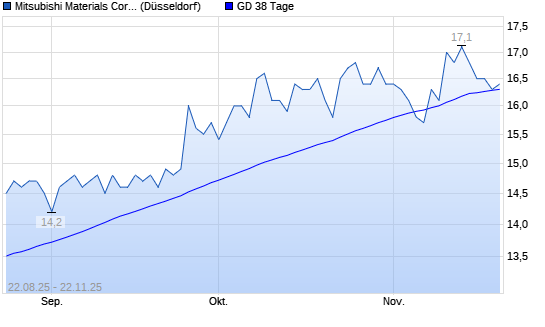 Mit dem Rücksetzer auf 16,40 EUR hat die Mitsubishi Materials-Aktie am 21.11.2025 die 38-Tage-Linie nach unten gekreuzt.Die Mitsubishi Materials-Aktie befindet sich seit dem 13.08.2025 ...weiterlesen