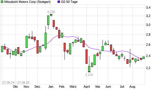Mit dem Anstieg auf 2,36 EUR hat die Mitsubishi Motors-Aktie am 26.08.2025 die 50-Tage-Linie nach oben gekreuzt.