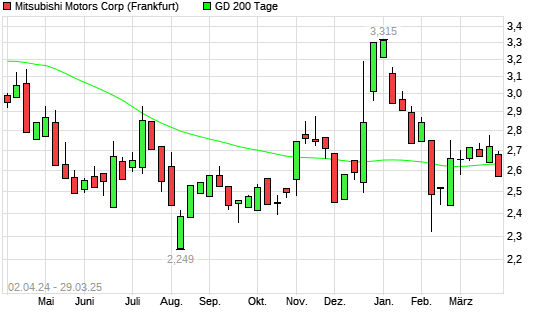 Mit dem Rücksetzer auf 2,57 EUR hat die Mitsubishi Motors-Aktie am 28.03.2025 die 200-Tage-Linie nach unten gekreuzt.
