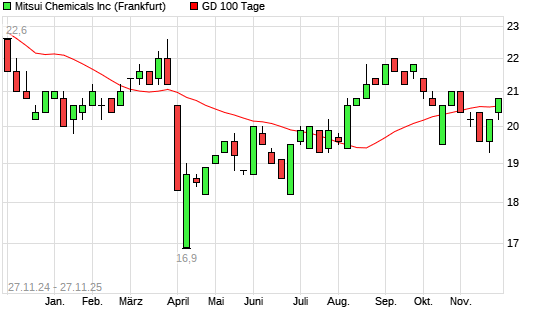 Mit dem Anstieg auf 20,80 EUR hat die Mitsui Chemicals-Aktie am 26.11.2025 die 100-Tage-Linie nach oben gekreuzt.